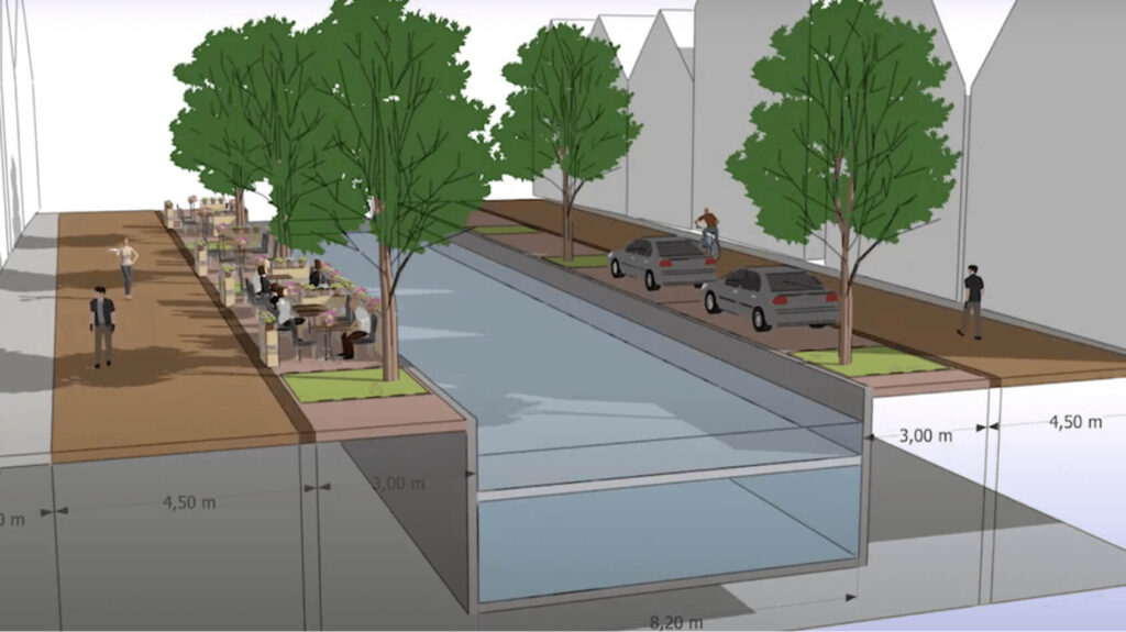 Leeuwarden staat voor grote opgaven: energietransitie, waterberging, hittestress en vergroening. Door water terug te brengen in Het Vliet draagt de wijk op innovatieve wijze bij aan de wateropgave van de stad.